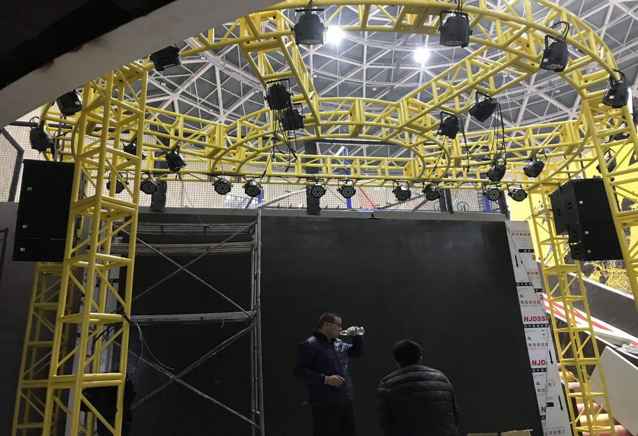 燈光方面,為了營造舞臺(tái)區(qū)域的演出效果。使用了Baiangde GS350光束燈14臺(tái),GS230光束燈10臺(tái),LED染色燈30余臺(tái)及其它10余臺(tái)效果燈具。部分極限運(yùn)動(dòng)區(qū)域,配合場地音樂動(dòng)感需求,也針對(duì)性安裝了十多臺(tái)光束燈。